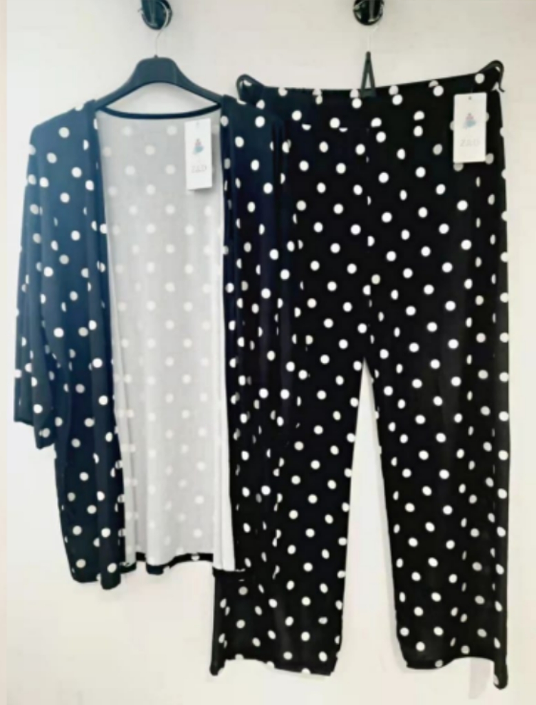 Conjunto lunares kimono con pantalon desde una talla 46 a una 52 punto frio.